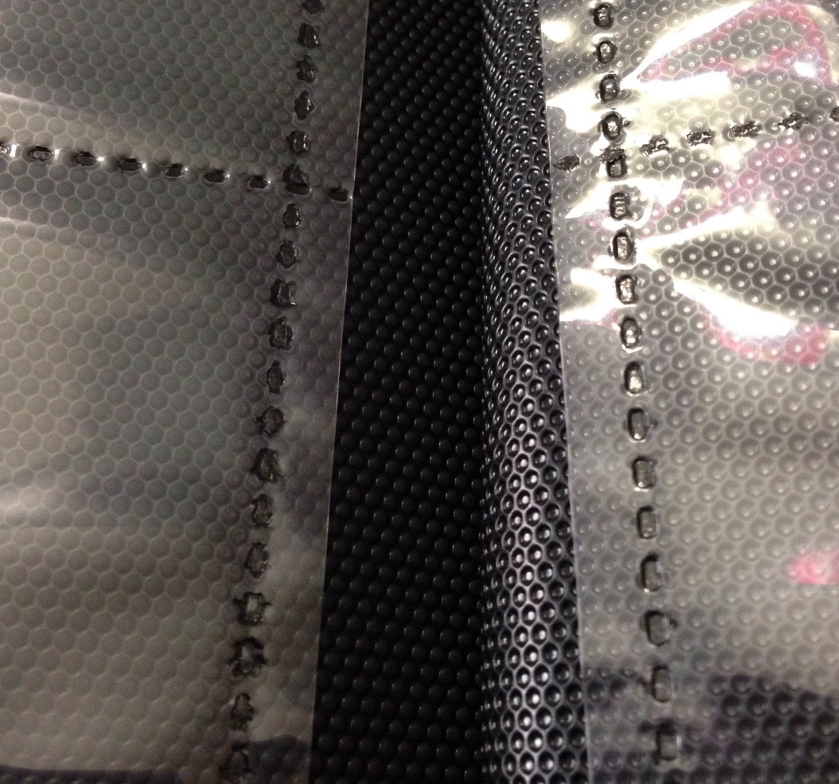Las cubiertas son flexibles pero llevan un refuerzo en el interior de la parte delantera y trasera para evitar que se doblen con facilidad. En la parte trasera queda perfecto, pero en la carpeta que hemos recibido para este análisis, la parte delantera queda un poco abombada, como si no se hubiesen unido las partes bien y quedase aire entre las dos piezas (como cuando usabas más forro del necesario para un libro). En la foto no se aprecia muy bien, pero si os fijáis en las zonas marcadas se nota que el reflejo de la luz no es como correspondería si fuese totalmente liso.