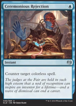 Anda que no! Hacía tiempo que no sacaban un buen hard-counter de coste uno (el Brain Surgery al final no terminó de convencer mucho - es casi imposible tener el Delirium listo para esto), y bueno lo es con avaricia: si es incoloro, golpe de remo; eso incluye artefactos incoloros (que no artefactos coloros, que hay unos cuántos), cartas con Devoid y, por supuesto, los Eldrazis incoloros puros; y sabiendo la brasa que dan los susodichos en Standard (y más que darán en cuanto roten la Compañía Reunida, los bichos con Surge y el Mandato De Atarka) y en Modern, como que esto puede acabar metiéndose en un fantastillón de banquillos como el meta empiece a tener fobia por los colorines. Carta potente, sin duda.