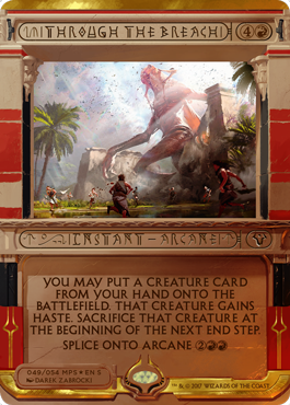 Un clásico navideño, como sólo un Muestra y explica en Modern puede ser – preguntad a quien haya jugado con o contra un Griselbrand Reanimator. Aparte, esto se puede splicear con arcanos – que si bien suelen ser unos hechizos flojos con avaricia, el Cardumen nutriente se juega en ese mazo, y ganarse sus buenas 11 vidas con el Sierpe lomo del mundo (o mejor todavía; baja la Wurm con el Atravesando la brecha, y te quedas con sus miniWurms de regalo). Carta con chiringuitos varios, para todos los gustos!