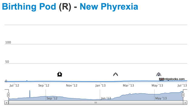 Pero más allá de esto, hay varios factores que la hacen casi única. Para empezar, el fantasma de la reimpresión no parece muy cercano, ya que es una carta muy nueva para aparecer en Modern masters; tiene una habilidad única (mana pirexiano) que hace que sea complicado verla en una ampliación básica tipo M14, amén que es una carta poderosa y muy divertida de jugar. Tiene todos los condicionantes para subir en el corto y medio plazo. El único miedo aquí es que a los señores de Wizards les de por banearla, cosa que veo bastante improbable.