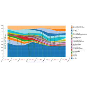 *Gráfico de Áreas "Karsten": Este gráfico dinámico sirve para explorar el metajuego (ponderado) periódico. En la mitad de cada intervalo de tiempo marcado se representa un punto de datos para todo ese intervalo. Pasando el ratón cerca de esos puntos, se puede ver el porcentaje del metajuego representado. Si otro punto está demasiado cerca, se muestran apilados. La otra forma de explorar los datos es pasar el ratón por un arquetipo en la leyenda, se mostrarán todos sus valores a la vez.