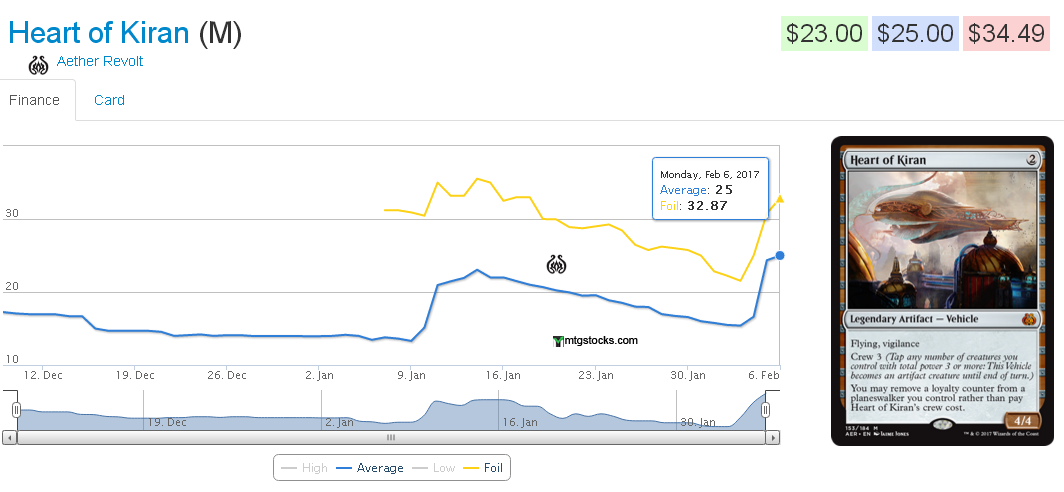 Aunque banearan al helicóptero este artefacto tomo su lugar. No solo es legendario y evoca el nombre de Kiran Nalaar (factores para coleccionistas y jugadores casuales) lo cual le da bastantes posibilidades de no bajar de los $18 en los próximos meses sino que se convertirá en una piedra angular del formato. Vende tus copias en el hype actual y reconsiguelos con el paso de las semanas. Ganaras algo de efectivo y volverás a tener tus copias. El chiste con esta carta es no hacerte daño. Como el ejemplo del Mecatitan azul la carta no dejara de ser buena mas no significa que siempre seguirá en su precio tan alto