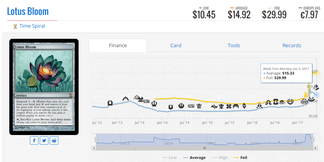 Si vas a especular con esta planta de metal no olvides que tiene una versión promocional y se ha reimpreso en Modern Masters, no me sorprendería verla en Iconic Masters así que ten cuidado por el momento. La paciencia es una virtud.