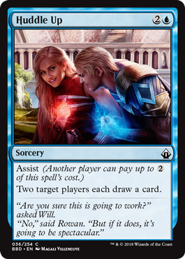 Dos jugadores roban una carta cada uno, por tres manás - sin duda, no podría ser más obvio que esta carta es para formatos multijugador; menos mal que tiene Assist. Un punto a aclarar - tú decides (o negocias) quién va a ser el jugador Assistente en cuanto decidas jugar la carta, antes de pagar maná; y si el otro jugador no quiere o no puede apoquinar, puedes retractarte de jugar la carta y seguir el juego - esto es importante si pretendes jugar esto en Commander y quieres un poco de mamoneo diplomático. Aclarar también que el jugador del Assist no tiene por qué ser ninguno de los beneficiarios de esta carta (como tampoco tienes por qué serlo tú) - sin duda, una carta que hará deliciosamente troleante el Commander.