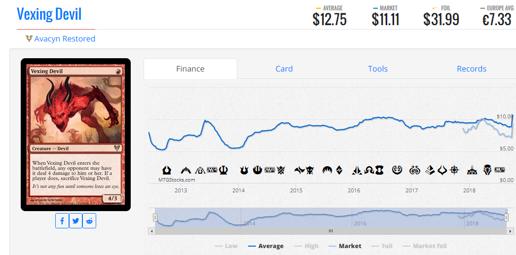 La gente la sobrevaloro en su tiempo y muchos caen en el pensamiento de que es una buena carta solo porque pega fuerte o por hacer 4 danos (recuerda que el oponente siempre elige lo que le conviene). Es tan amada que incluso tiene un multiplicador x3. Al final no es lo que me importe a mi sino la demanda que tenga lo que define su precio y este diablo está haciendo olas en el mercado.