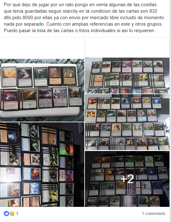 Aquí hay cartas de Standard, Modern, Commander y otros formatos, pero sobre todo cartas con una liquidez mayor. El precio es un poco alto mas no es algo que llegue a niveles estratosféricos y no incluye piedras como Torre del relicario o Ángel cegador. Además, es un jugador hyperconfiable, de mi ciudad y que además me ha dado buenos precios desde que lo conocí. ¿Qué podría salir mal?