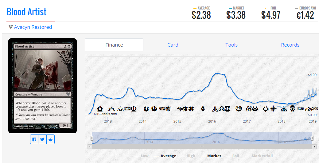 Ya fue reimpreso pero sigue subiendo y se debe a que su demanda es natural por los jugadores de EDH y los casuales. No me sorprendería verlo en $5 usd para final del 2019 con copias foils en $10 (también les pondría el ojo a ellas).