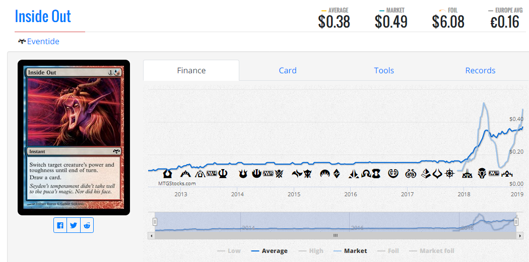 Cartas como Delver of Secrets, Alarido de guerra, Hebras prismáticas, Ofuscar, Borboton e Exteriorizar han tenido subidas y bajadas en cuanto a su demanda durante mucho tiempo. Solo observa sus graficas:
