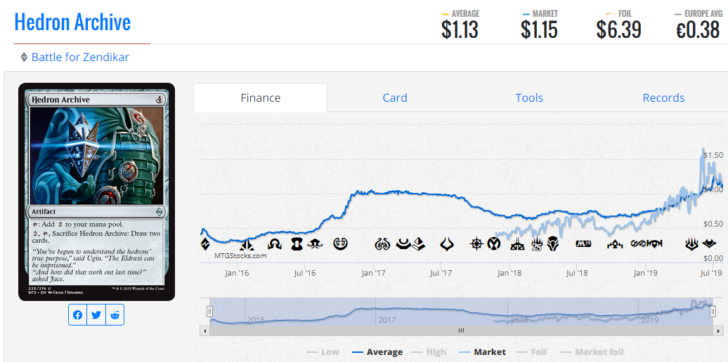 Esto se debe a que es un rampeador bastante útil en los primeros turnos mientras que en el juego avanzado te permite generar ventaja de cartas en tu mano. Ya ha sido reimpreso y lo curioso es que sigue subiendo con la llegada de nuevos jugadores que ven el potencial de este artefacto.