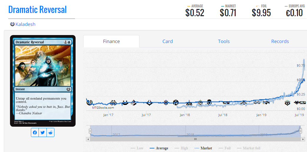 Es muy fácil de reimprimir (lo que es algo a tomar en cuenta) así que lo mejor que puedes hacer es mover las que encuentres y guardar copias foil pues es más complejo que sea reimpresa de esa forma. No te sorprendas si la ves en $3 usd a finales de 2019.