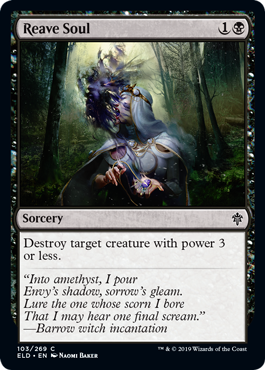 Chulo! No uno, sino dos removals negros nuevecitos para suplantar al Caer En El Olvido: el Desgarro Espiritual es un viejo conocido de Origins que no terminó de convencer al personal (esa velocidad de conjuro, y especialmente el hecho de que durante ese Standard tuvimos al Caminante Lomohangar hasta en la sopa, como que no jugaban a favor de este hechizo), y el nuevo es un Empujón Fatal a la inversa (de coste tres para arriba) con exilio de regalo, y a velocidad de instantáneo! Habida cuenta de que el coste favorito del Standard es tres-cuatro, ya tenemos un nuevo superventas - aunque si vas a esto más te vale meter alguna cosa contra costes pequeñitos, como el propio Desgarro Espiritual, o aunque sea criaturas por tu cuenta.