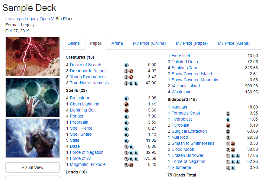 La baraja más barata es Burn y la única diferencia con Modern es que tiene Precio del progreso y Rafaga ardiente. Si lo que quieres es jugar legacy muy barato Burn es el punto de entrada siiiiiiiiiiin embargo a este punto preferiría Modern/Pioneer pues existen muchos más torneos de esos formatos con premios más jugosos.